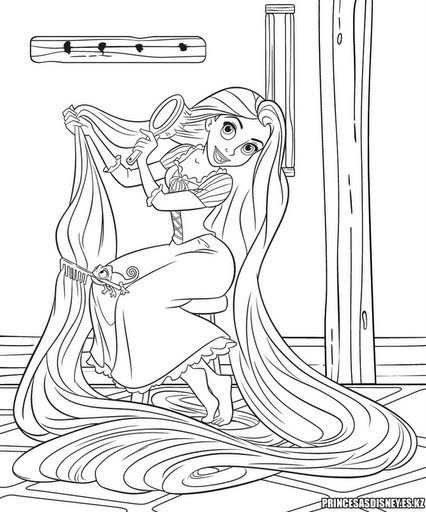Dibujo De Enredados Rapunzel Peinandose Para Colorear Dibujos Paginas Para Colorear Princesas Dibujos