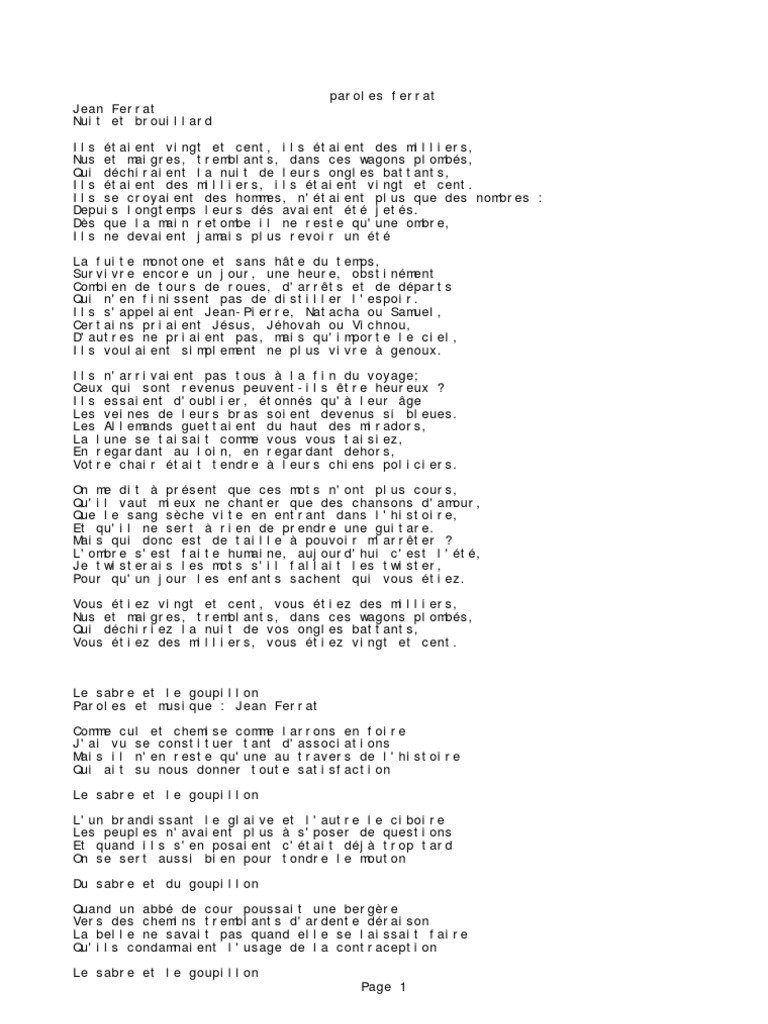 Paroles Ferrat Integrale Par Ardennais
