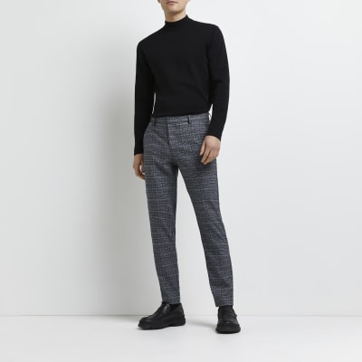 Slim Fit Checked Trousers Grey Clothing Ted Baker Row